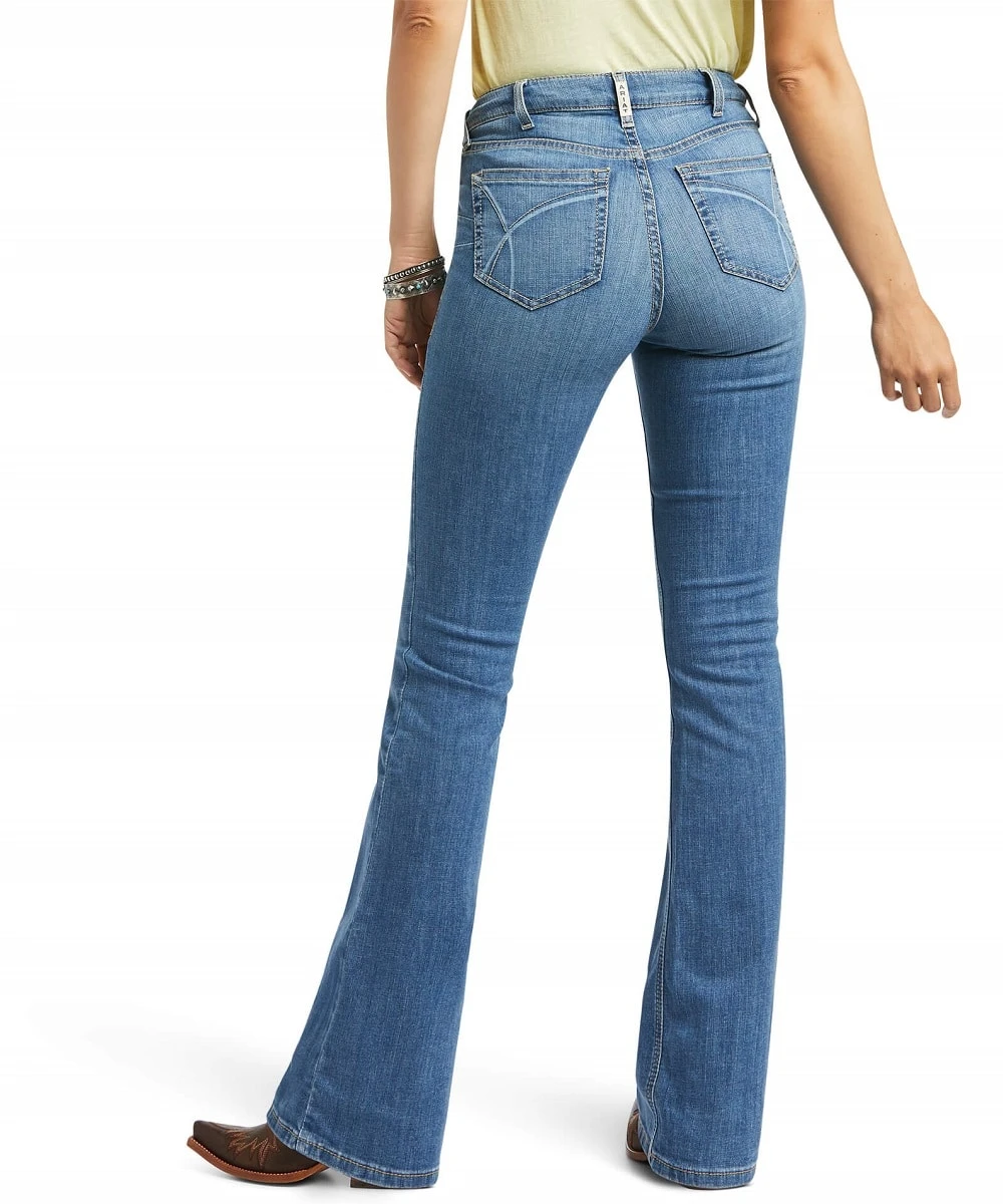 95% Cotton/4% Estrerell-P/1% Lycra Spandex, 9.75 Oz. Performance Stretch Denim; Light Wash; High Rise; Waist Band That Won’t Gap; Seat That Won’t Sag; Fashion Back Pockets With Stitch Detail; Whiskers; Fading; Five Pocket Styling; Boot Cut; Earth Friendly H2Lo Production Uses 50% Less Water In The Finishing Process; Style #10039602