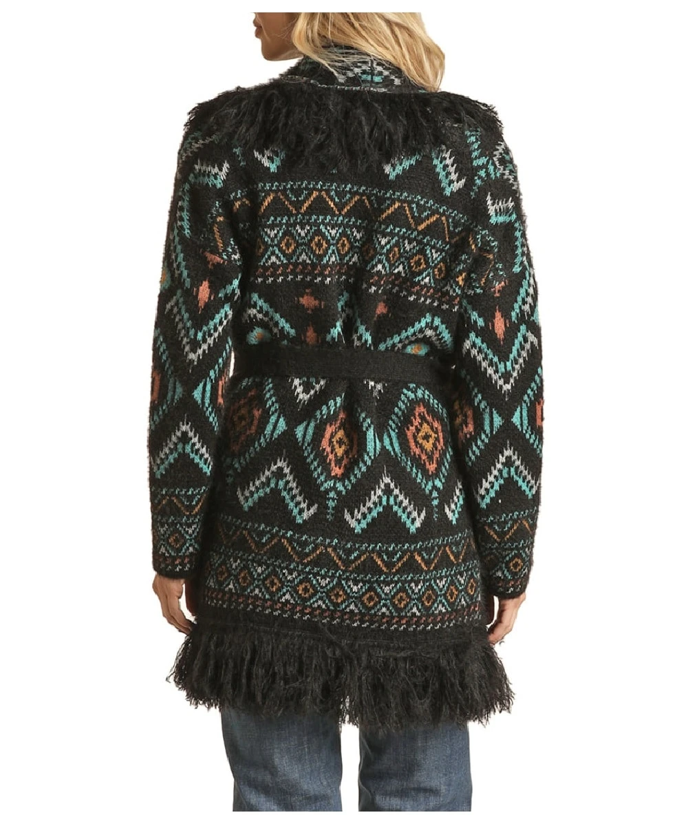 100% Acrylic; Long Sleeve; Knee Length; Knit Cardigan; Fringe; Belt Tie Closure; Aztec Pattern; Black With Turquoise And Coral Aztec; Color: Camel; Style #RRWT95R0C0
