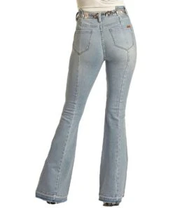 97% Cotton/3% Spandex; Allover Aztec Print; Stretch; High Rise; Button Closure; Two Rear Pockets Only; Flare Leg; Bell Bottom Jean; Style #RRWD7PRZR6