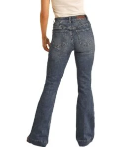 92.5% Cotton/6% Polyester/1.5% Spandex; High Rise; Four Pocket Styling; Hand Sanding Detail; Front Seam Detail; Medium Vintage Wash; Flare Leg; Style #RRWD8HR0SJ
